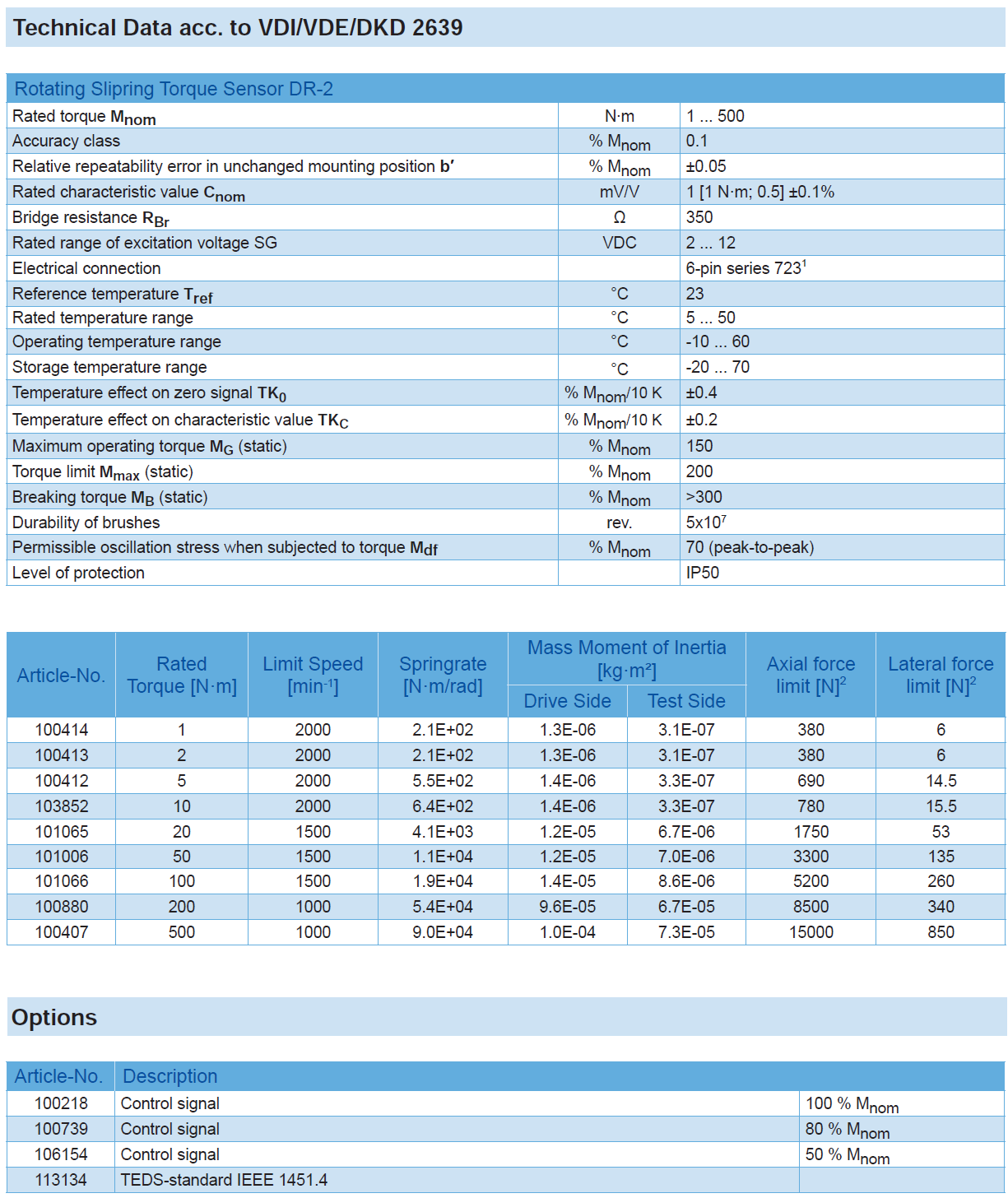 Rotating Slipring Torque Sensor DR-2 with Rated Torque from 1 … 500 N·m