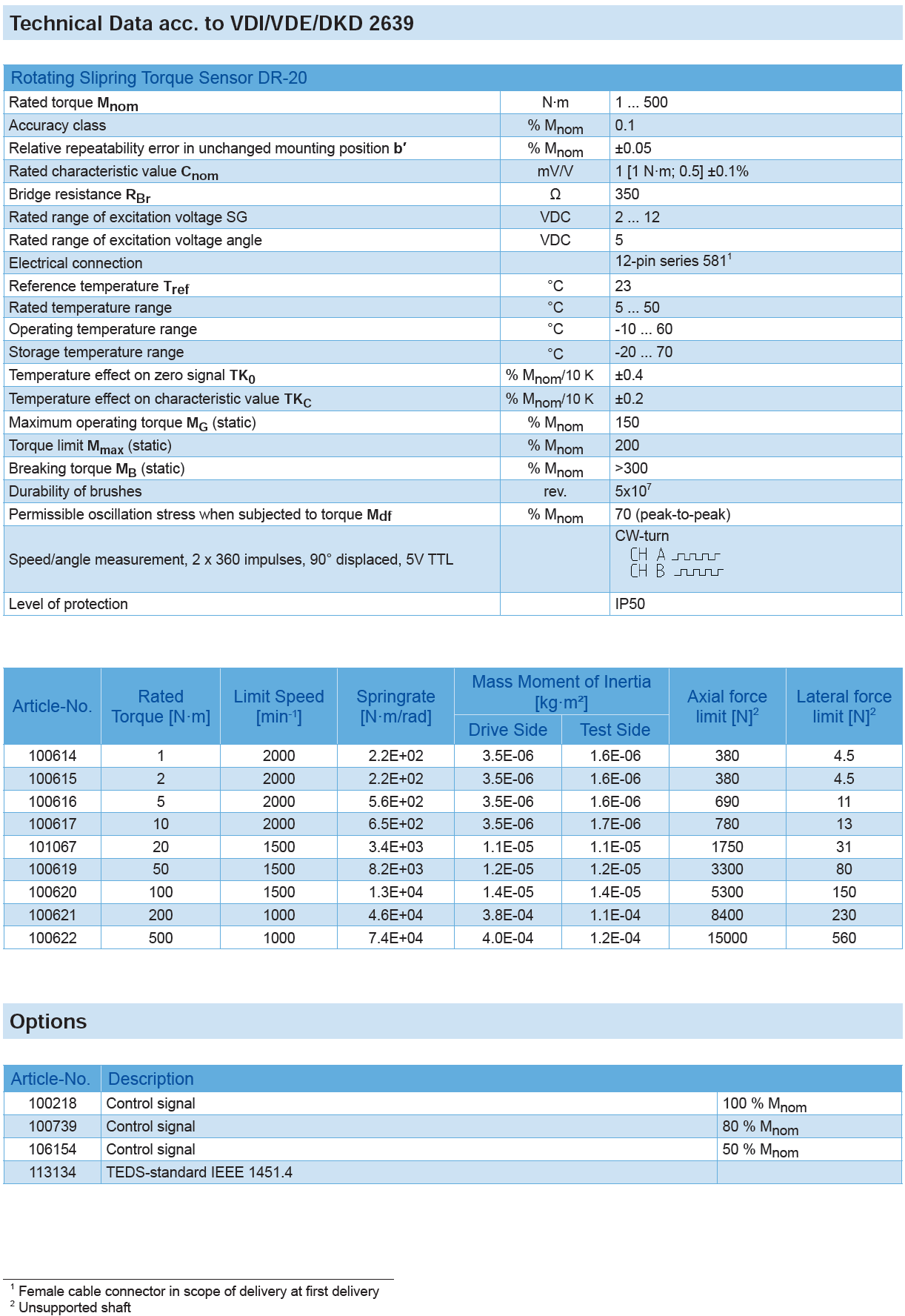 Rotating Slipring Torque Sensor DR-20 with Rated Torque from 1 … 500 N·m