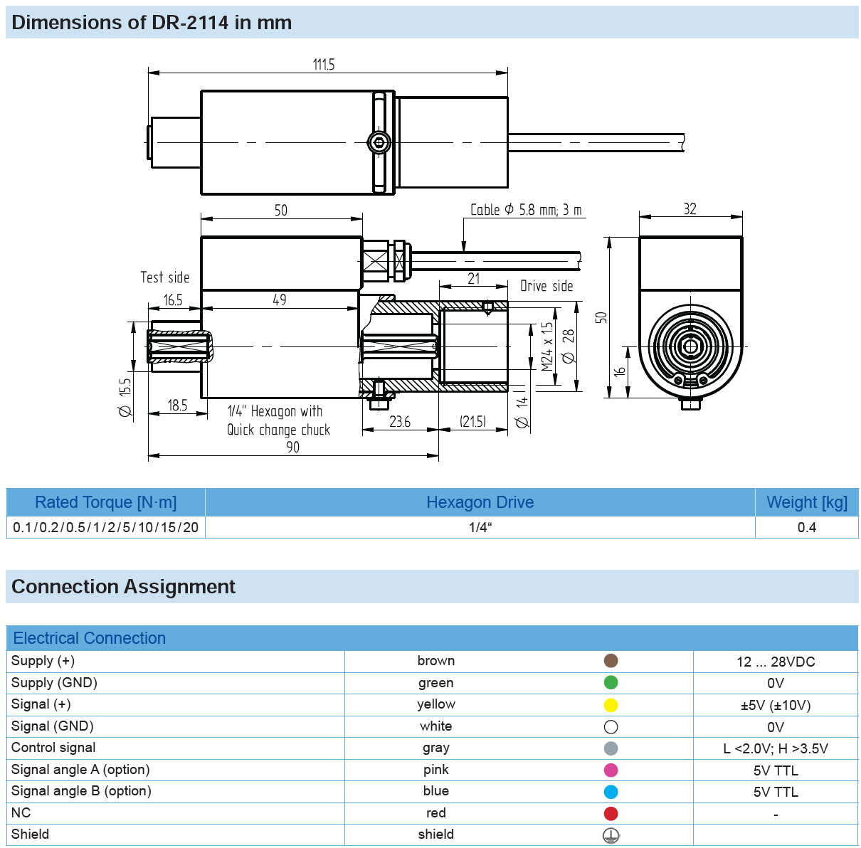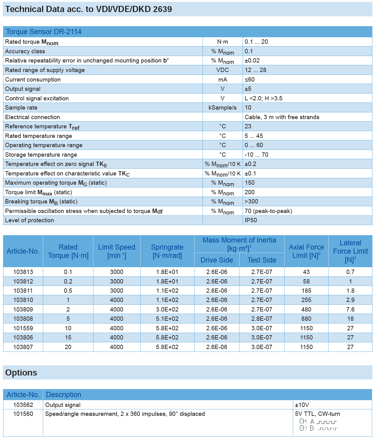 Rotating Torque Sensor DR-2114 (contactless) with Rated Torque from 0.1 … 20 N·m