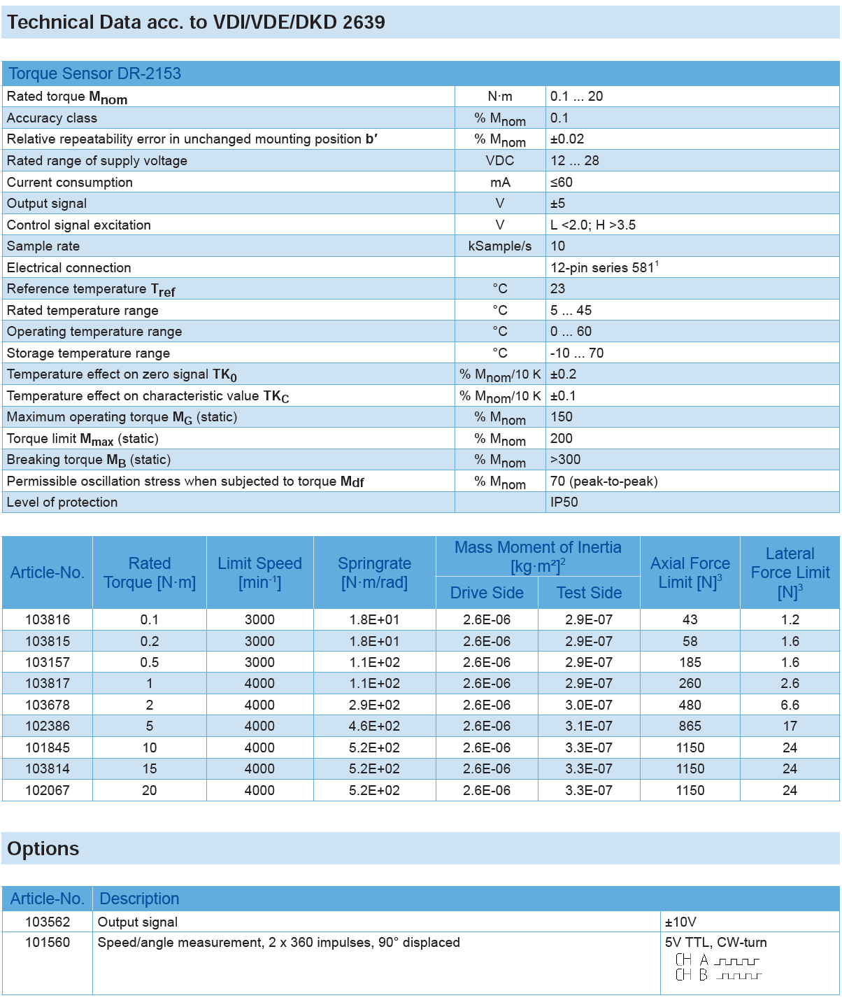 Rotating Torque Sensor DR-2153 (contactless) with Rated Torque from 0.1 … 20 N·m