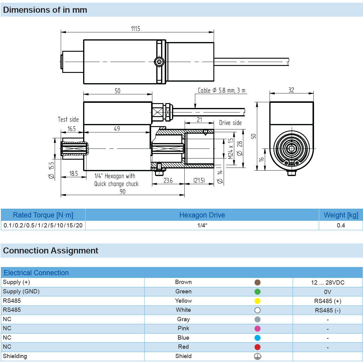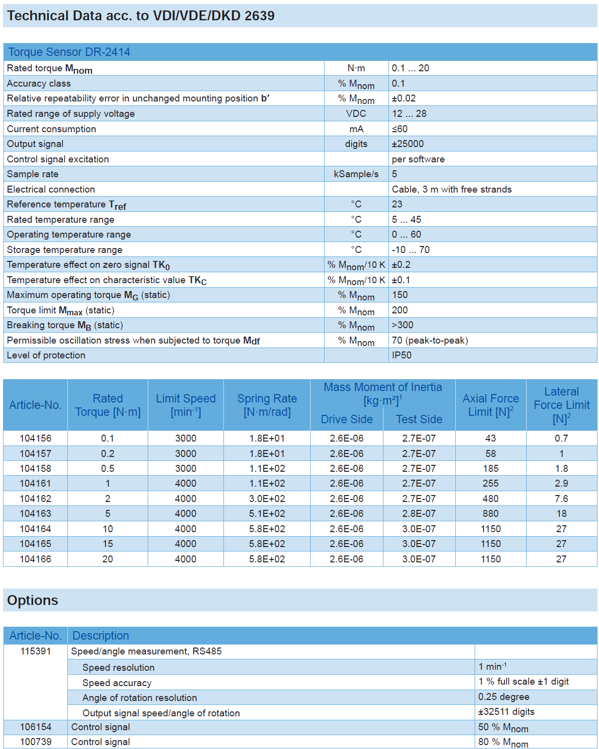 Rotating Torque Sensor DR-2414 (contactless) with Rated Torque from 0.1 … 20 N·m