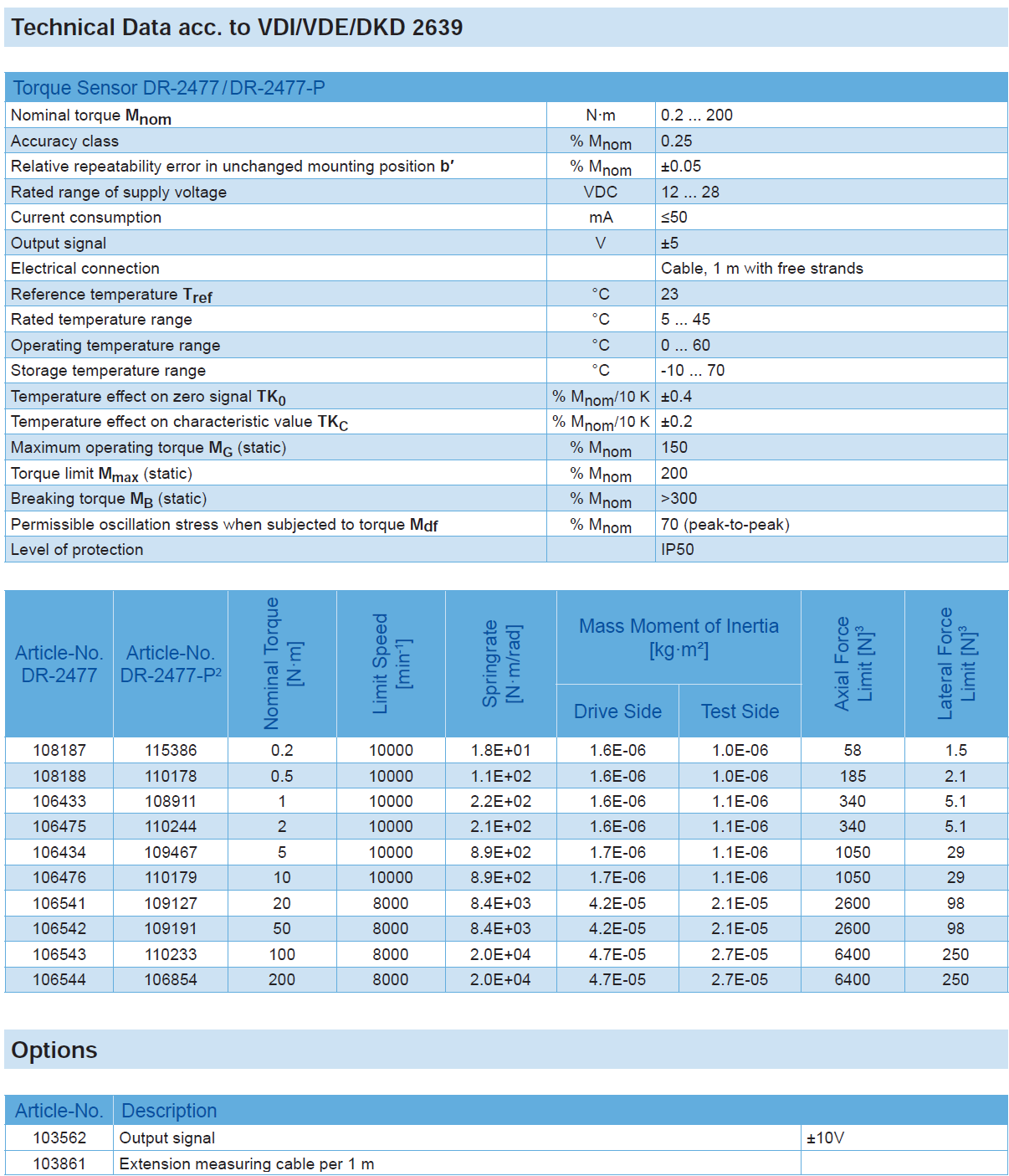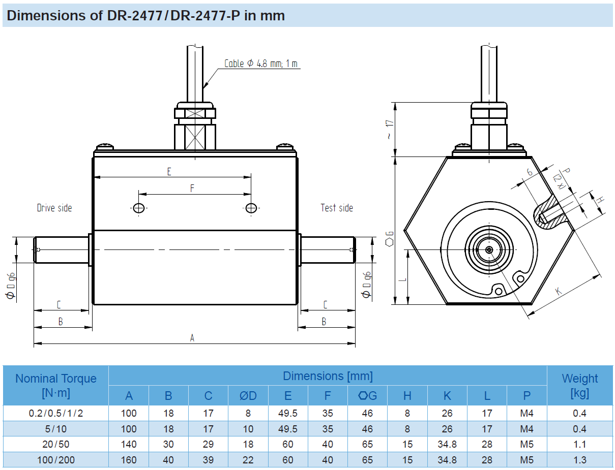 Rotating Torque Sensor DR-2477/DR-2477-P (contactless)