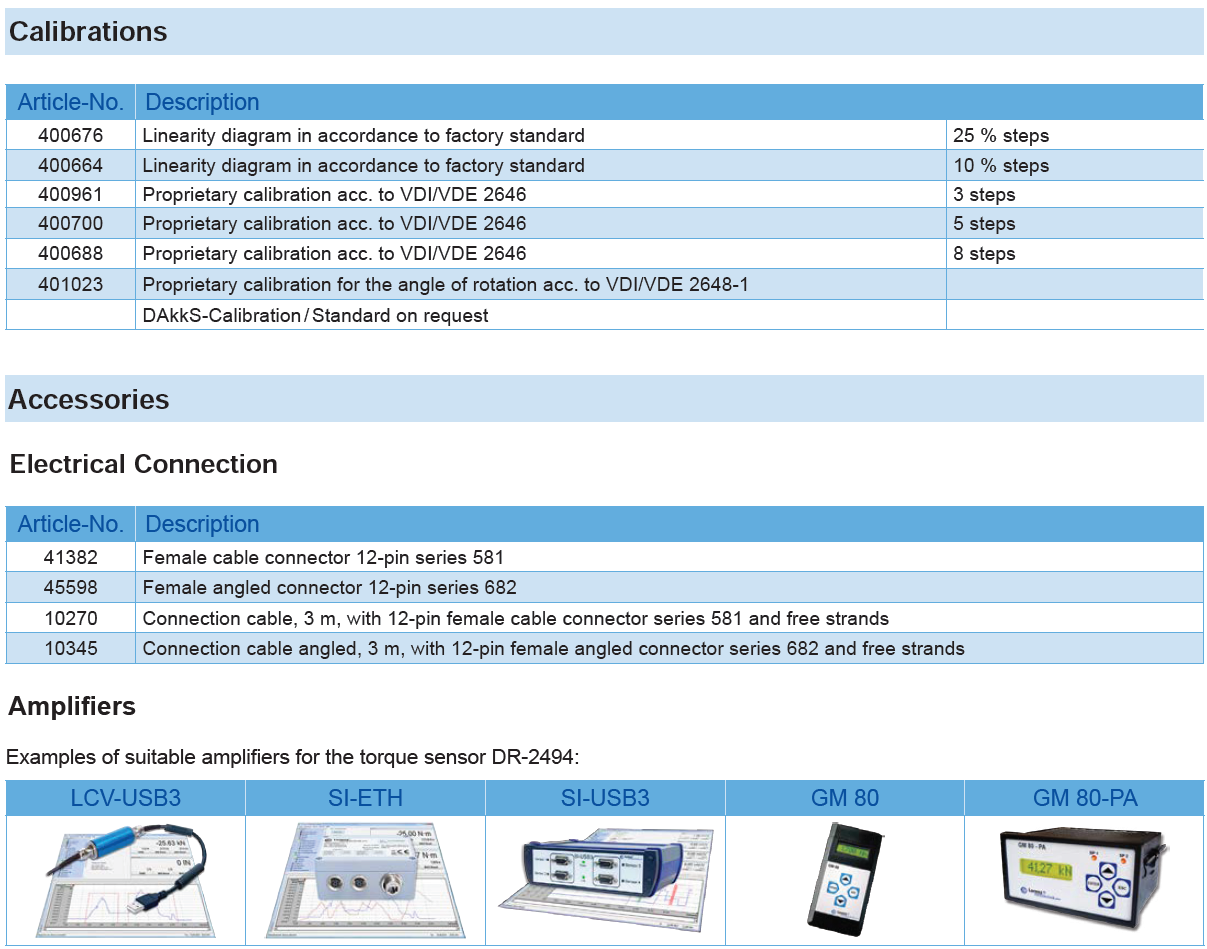 Rotating Torque Sensor DR-2494 (contactless) with Rated Torque from 0.1 … 20 N·m