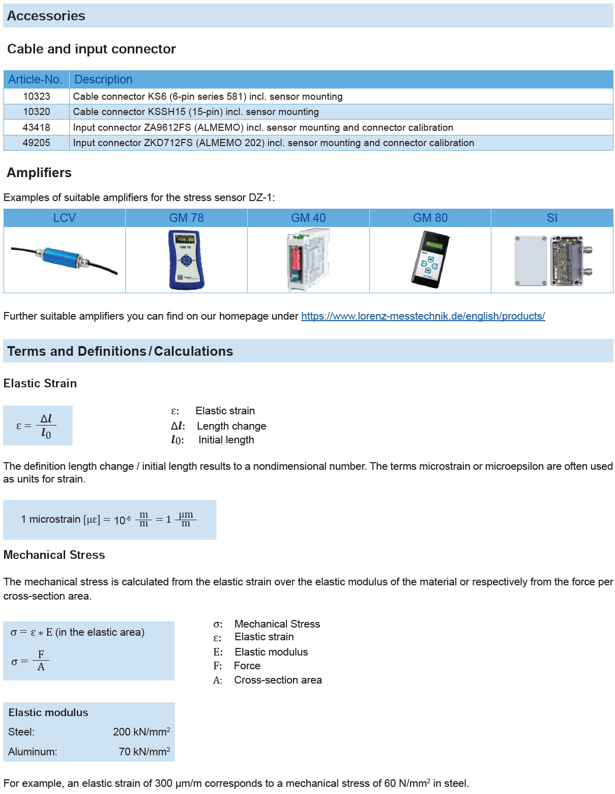 Stress Sensor DZ-1 with Rated Measuring Range from 300 μm/m