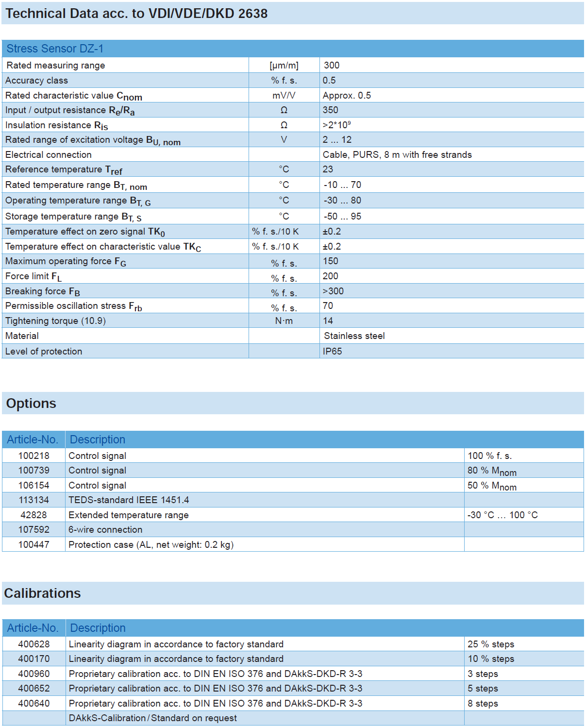 Stress Sensor DZ-1 with Rated Measuring Range from 300 μm/m