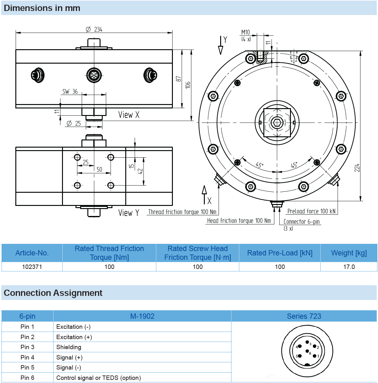Thread Friction Sensor M-1902 with Rated Thread Friction Torque of 100 N·m / Rated Screw Head Friction Torque of 100 N·m and Rated Pre-Load of 100 kN