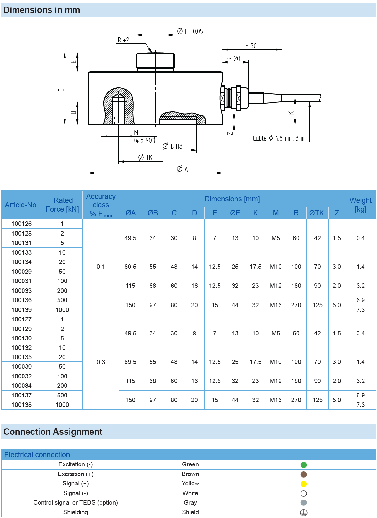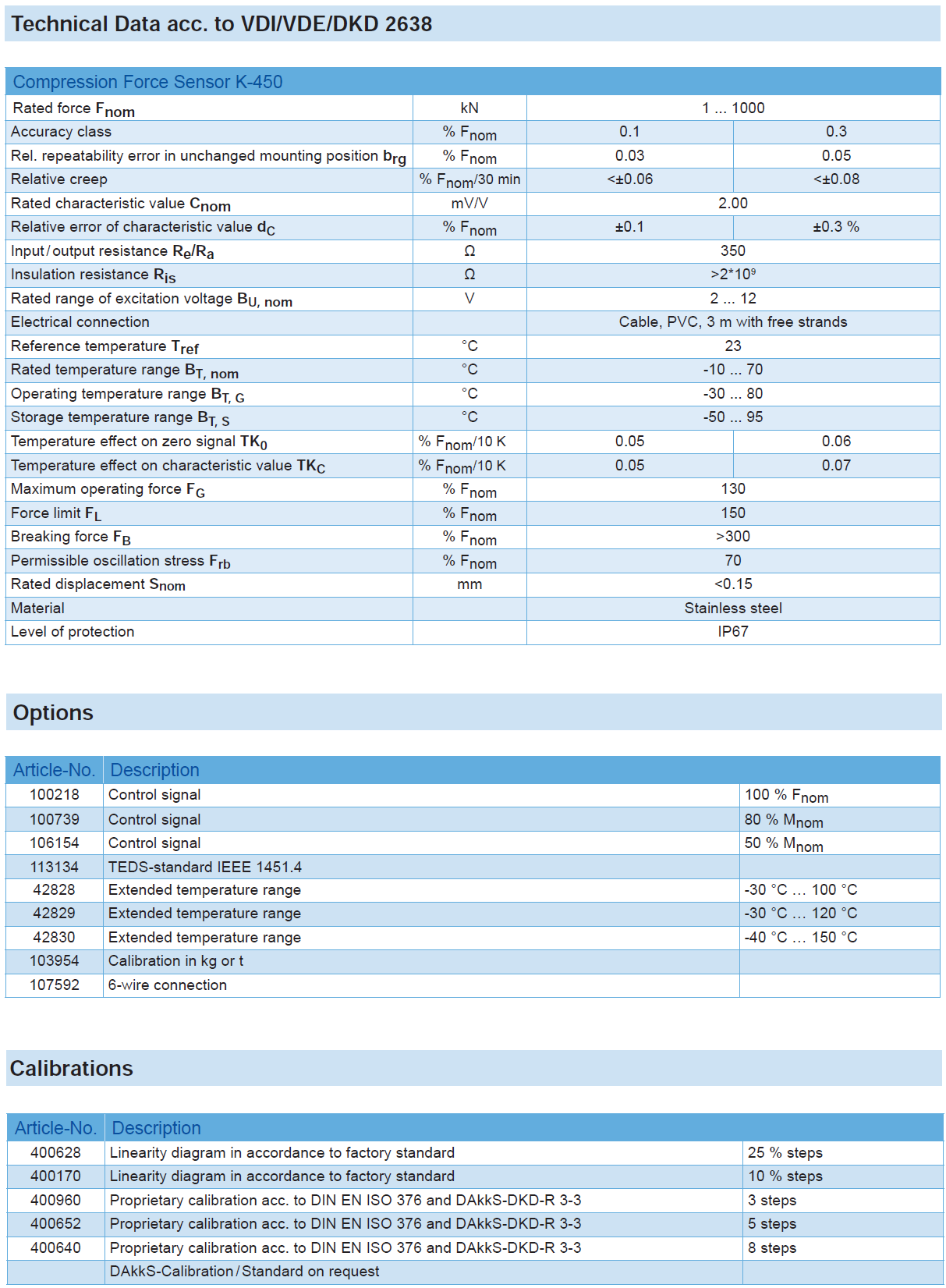 Universal Compression Force Sensor K-450 with Rated Force from 1 … 1000 kN