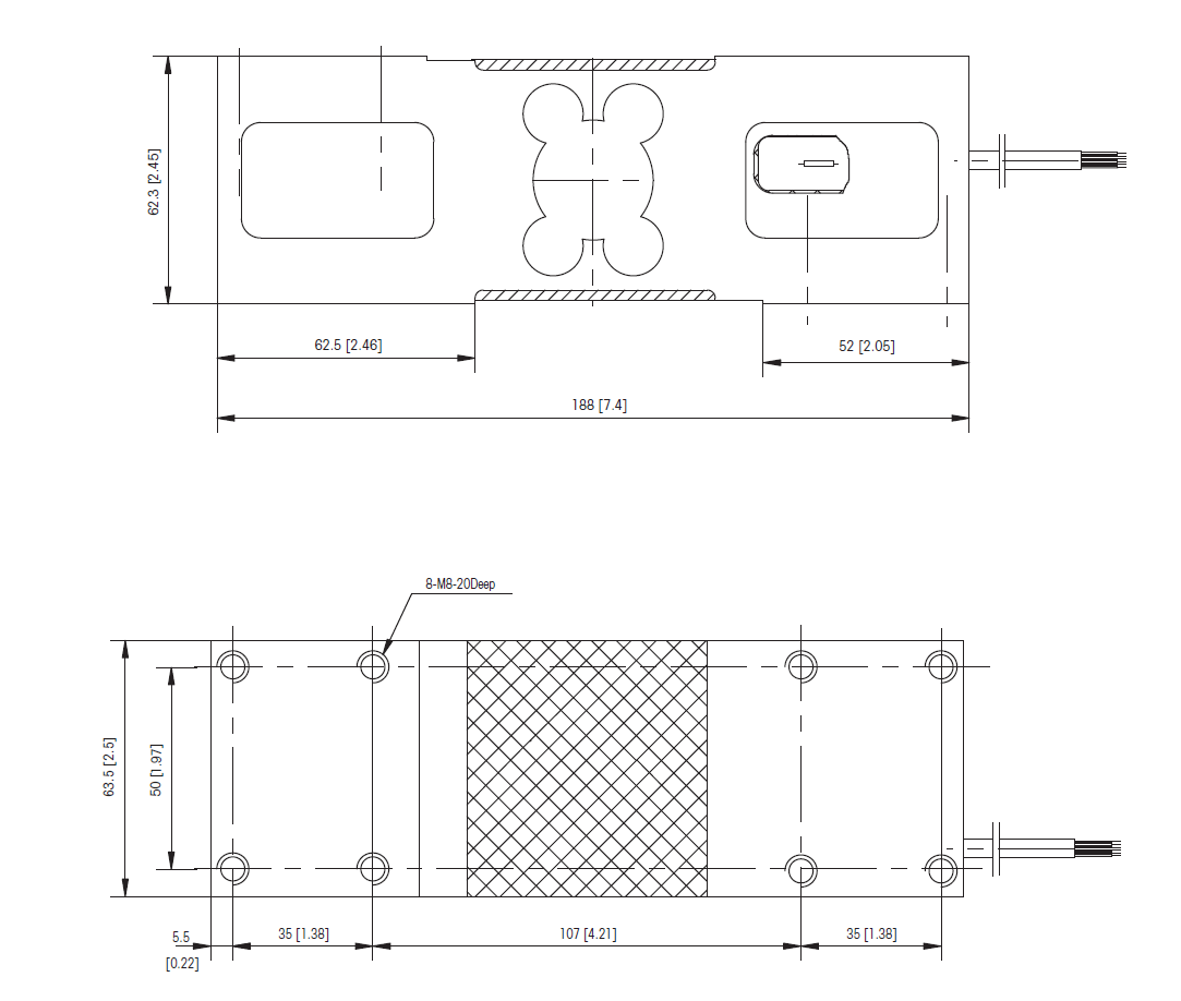 MT1260 Load Cell Dimensional Drawings mm [inch]