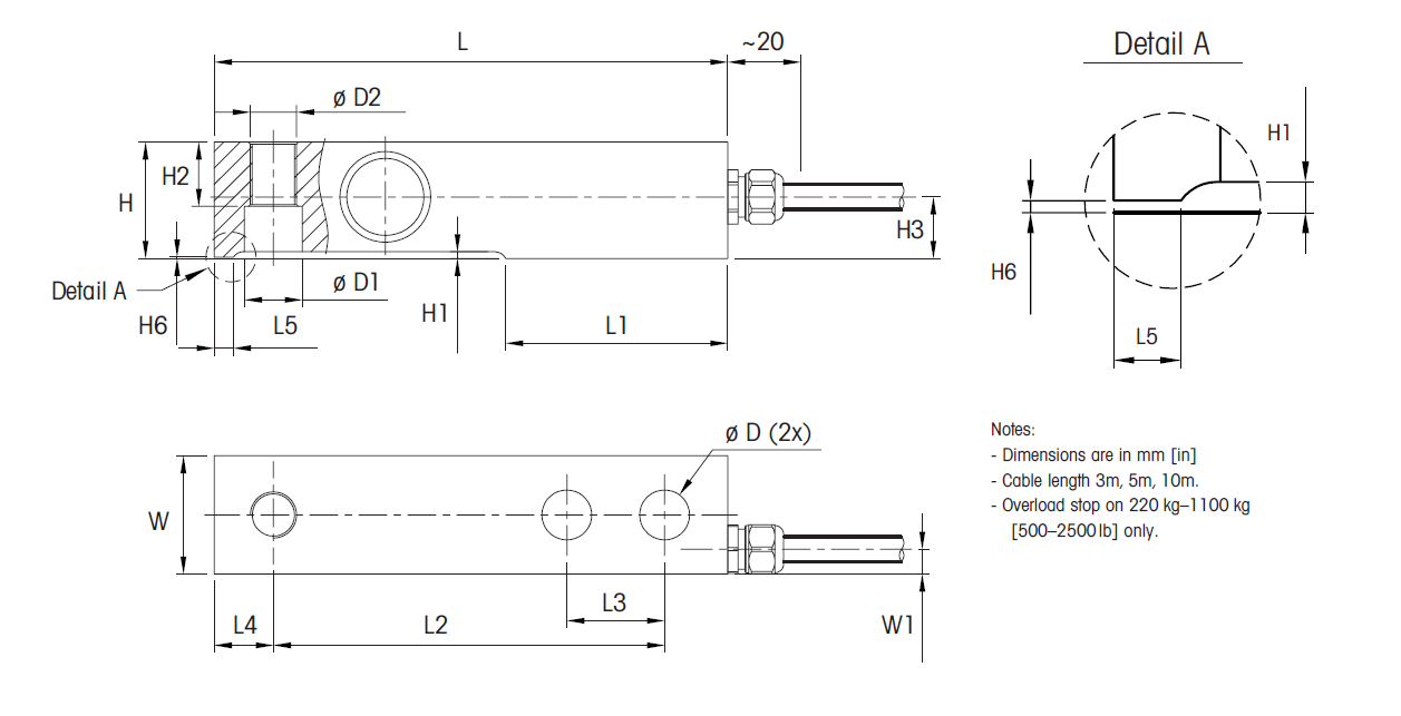SLB515 Load Cell Dimensional Drawings mm [in]