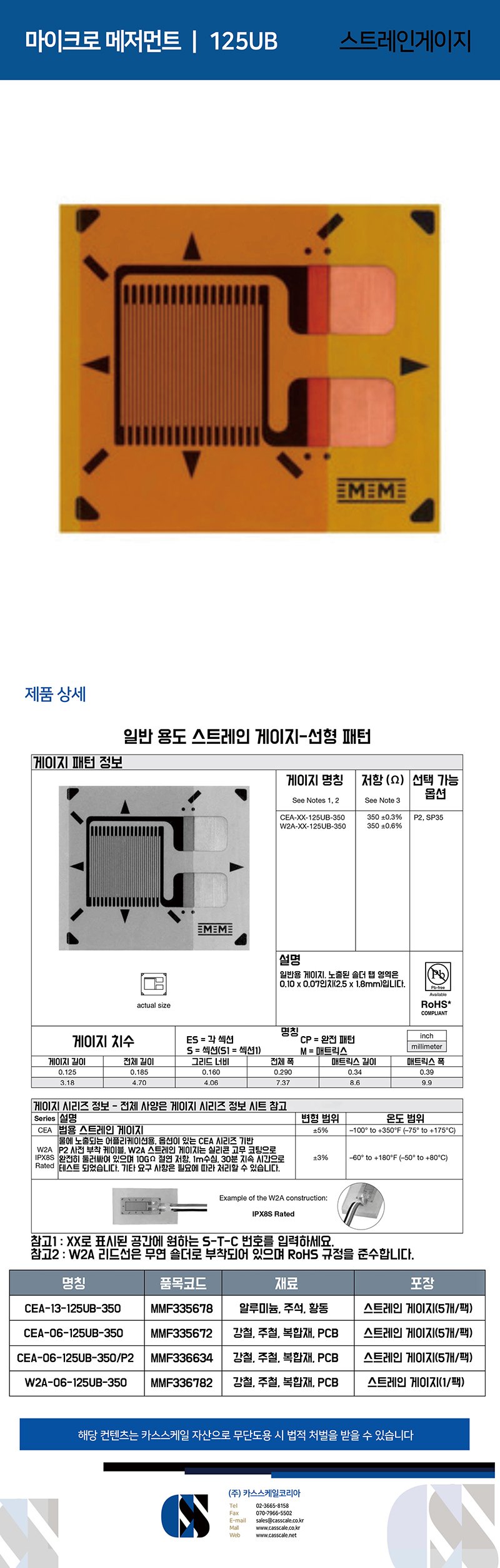 [단종] 카스 / STRIP GAGE SV 120Ω / 120옴 스트레인게이지