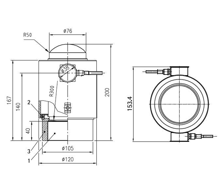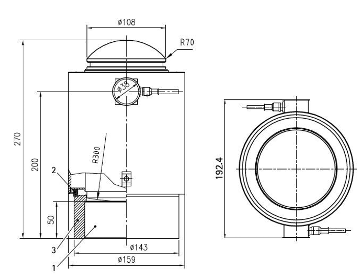 Load cell PR 6201/25 DB (maximum capacity 200 t), PR 6201/35 DB (maximum capacity 300 t)