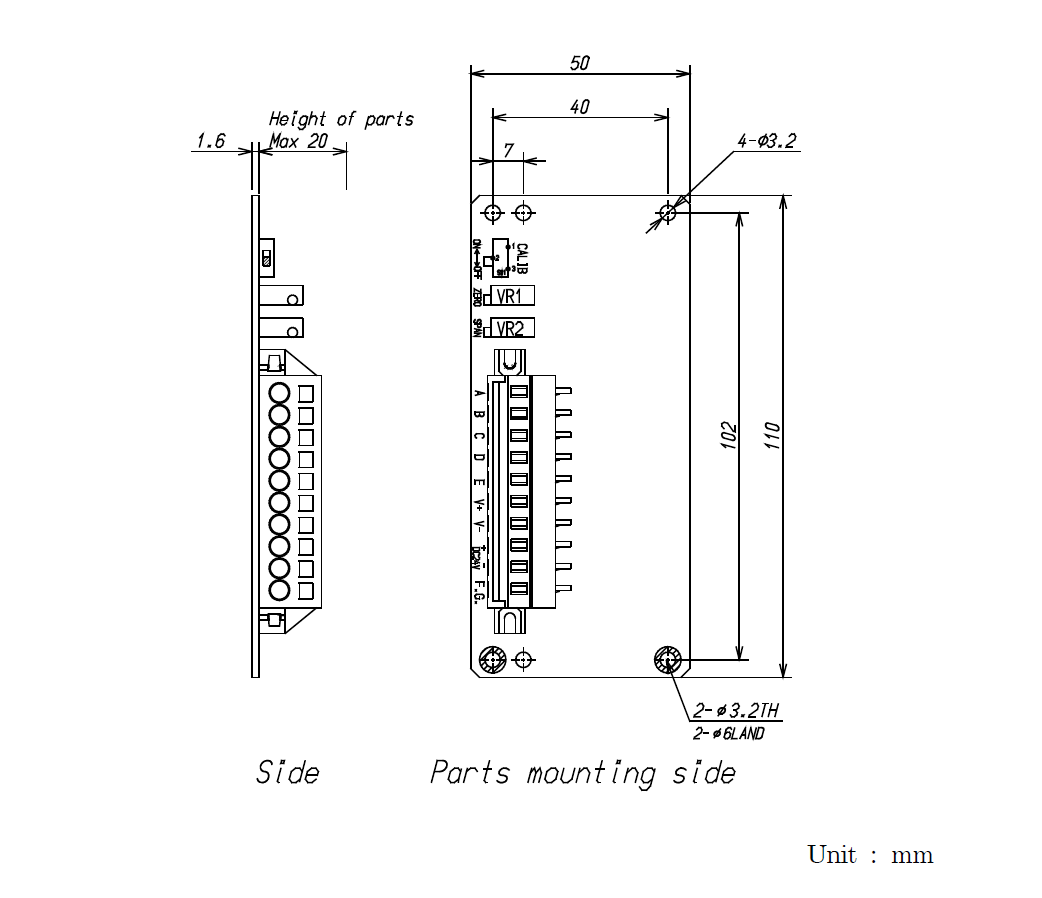 Zero adjustment range ±0.25 mV/V (Tare compensation is adjusted by mounting the resistance.)