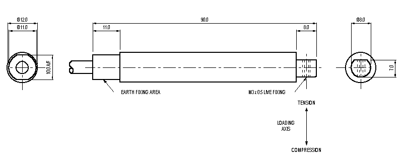 When this loadcell is rationalised the resistors are housed in a capsule located in the loadcell cable 100mm from the free end. Capsule dimensions are Ø10mm by 57mm.