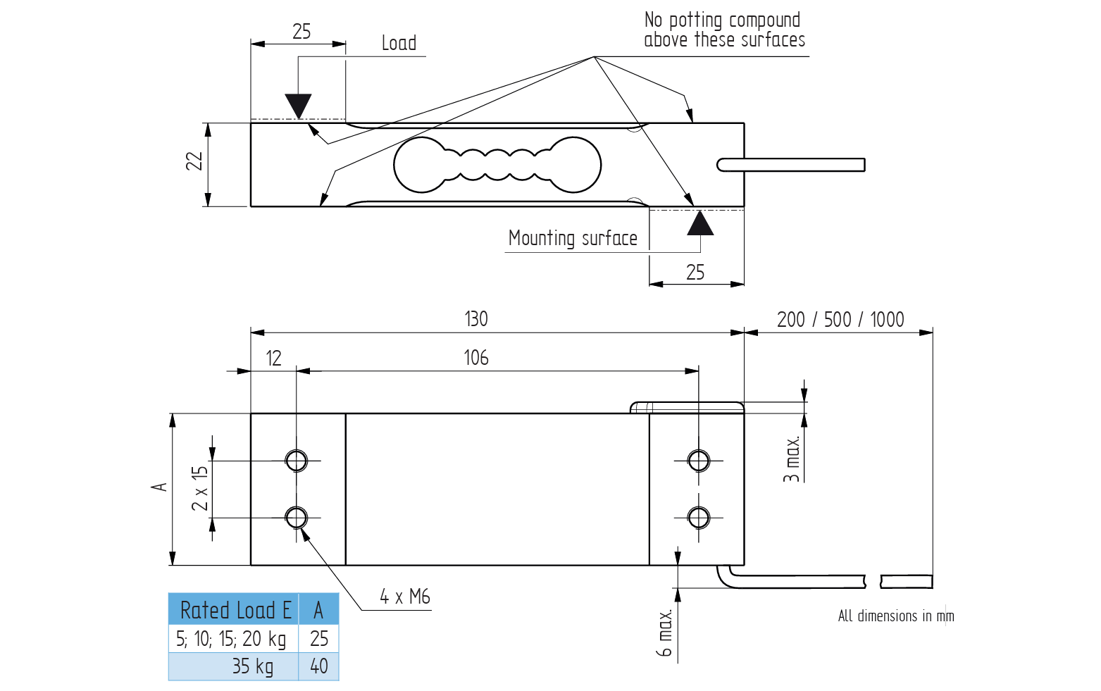 | Rated load (E) | 5; 10; 15; 20; 35 kg |