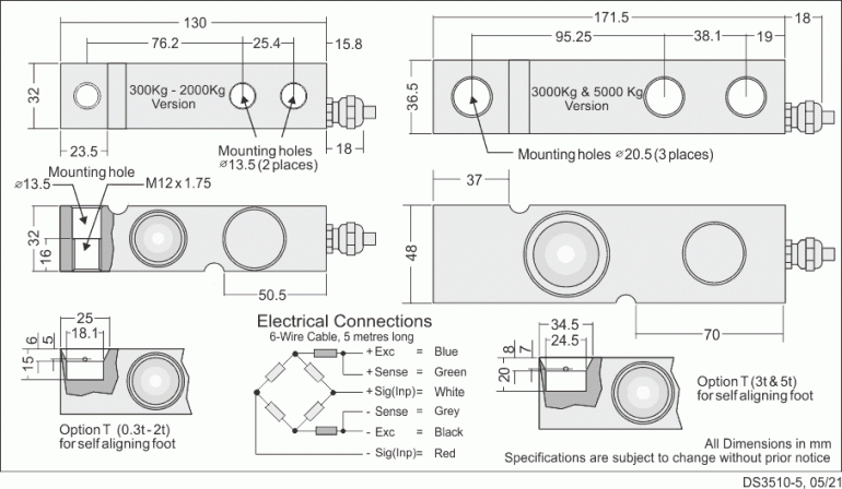 The T end option of this load cell is specifically designed to be used with a range of self aligning feet making them ideally suited to platform applications. The range of feet include height adjustable, flange and food grade options.