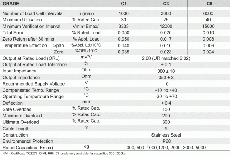 Typical applications include large platform scales, container, silo and belt weighing as well as force and torque measurements in the test and process industries. Approved to OIML R60 6000D and sealed to IP68, this load cell gives extremely accurate reproducible results, over a long term even in harsh industrial environments.
