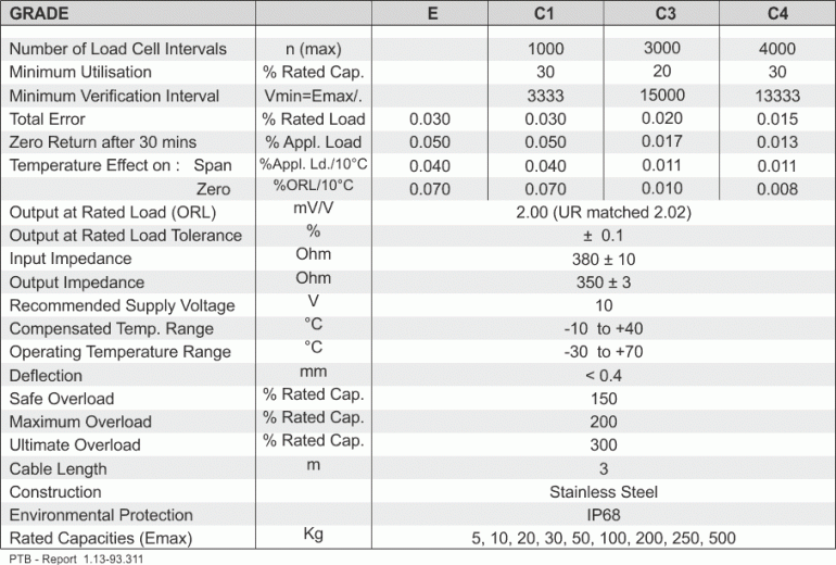 Capacities: 5, 10, 20, 30, 50,100, 200, 250, 500 kg