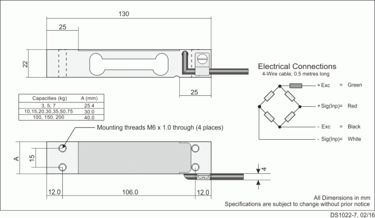 The 1022 load cell is fitted with a 4 core shielded cable as standard. Special cables and lengths are available on request.