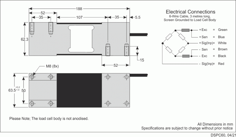 The Model PC60 like many platform load cells, has a dual beam mechanical design. Each load cell is manufactured using an optimised complex machining process. This ensures that there will be no measurement error when the load is placed off centre, eg in a corner of a platform.