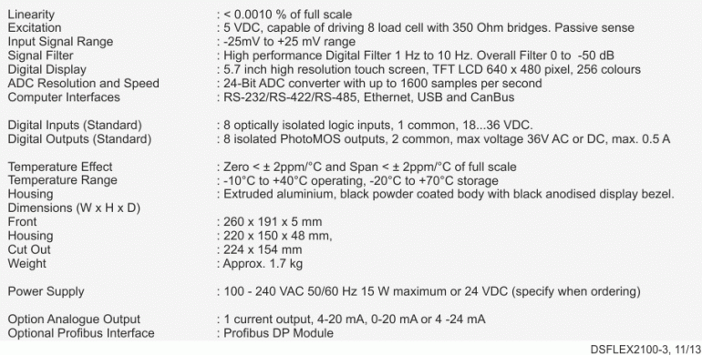 Weighing Controller FLEX 2100 – Specifications