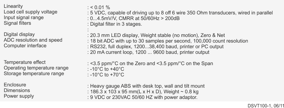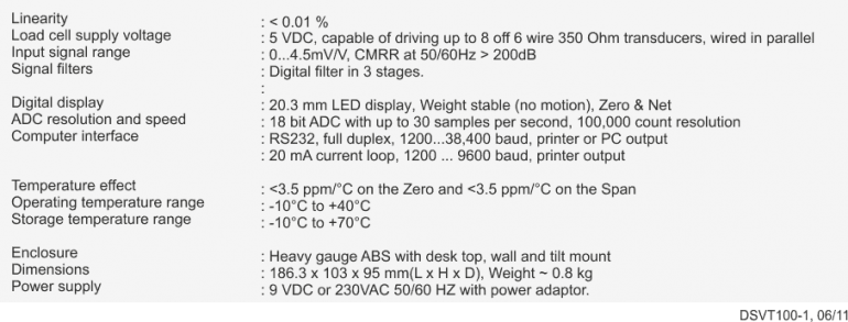 - Can drive up to 8 off 350 Ohm load cells wired in parallel