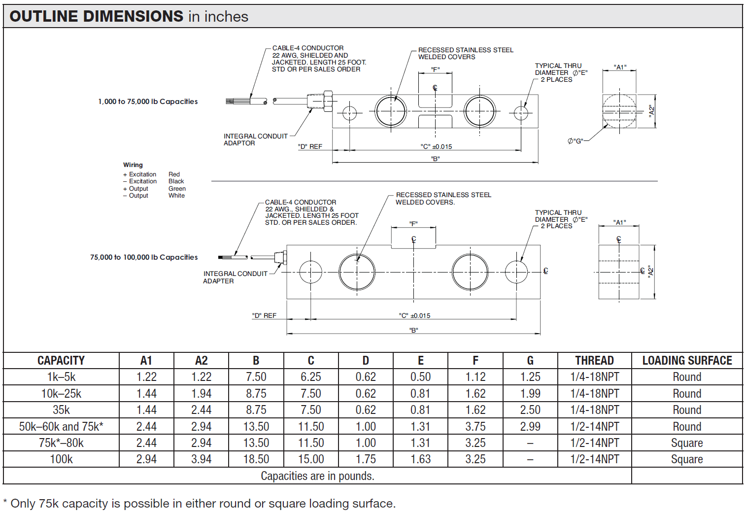Rated capacity—R.C. (Emax) 1k, 1.5k, 2.5k, 5k, 10k, 15k, 25k, 35k, 50k, 60k, 75k, 80k, 100k lbs
