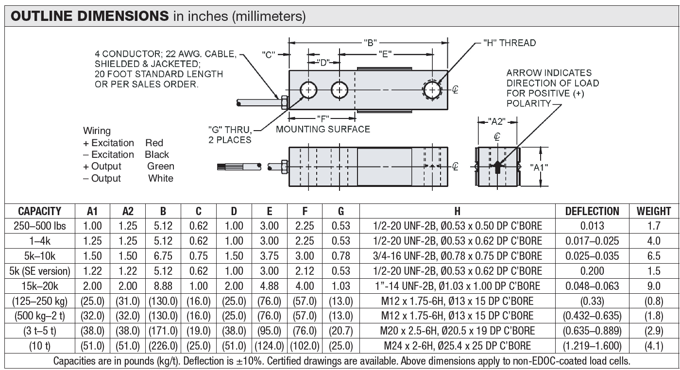| Rated capacity—R.C. (Emax) | 250, 500, 1k, 1.5k, 2k, 2.5k, 4k, 5k, 10k, 15k, 20k | lbs | |||