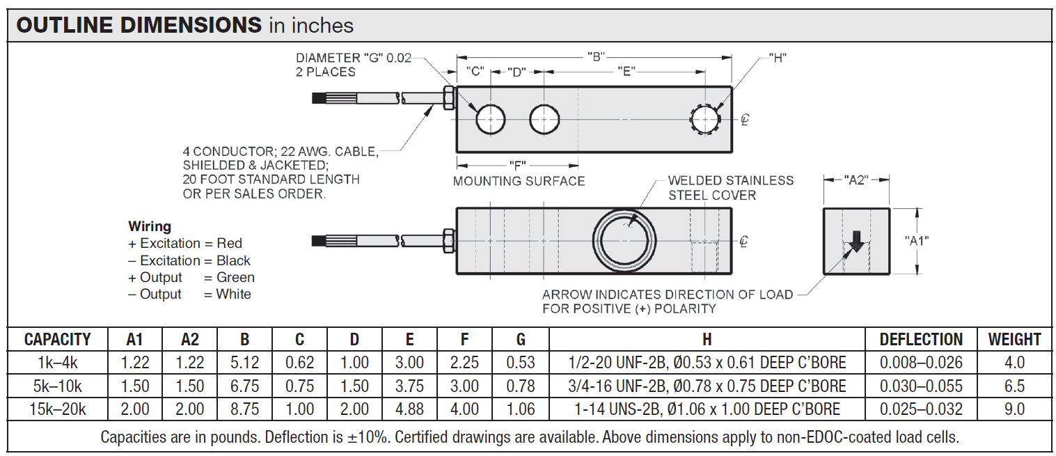 • Rated capacities of 1000 to 20,000 pounds