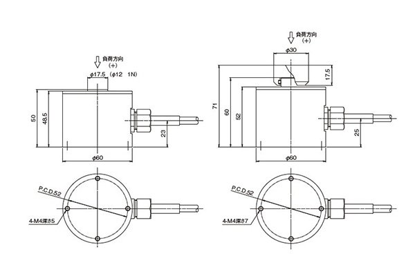 | RCF-50KN | 50 kN | φ 60 | 125 mm | 2.4 kg | Brinell hardness tester | Model RCF force transducer load transducer |
