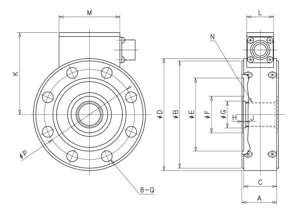 | Model | Capacity | A | B | C | D | E | F | G(H7) | H | J | K | L | M | N | P | Q | Natural frequency | Weight |