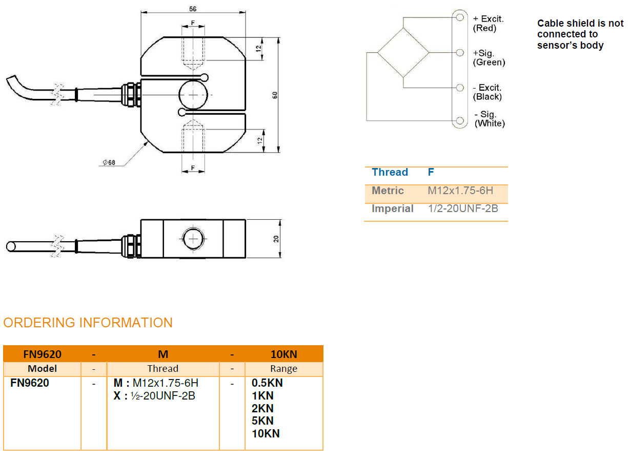 The FN9620 is a S-Beam load cell with ranges from 500N to 10kN, designed to operate in hostile environments from -40 to 90°C with IP68 ingress protection.
