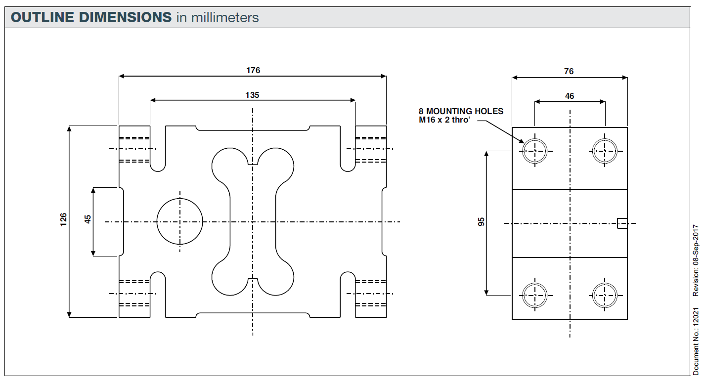 The load cell model 1320 is a high capacity single-point load cell designed for direct mounting of low profile, high capacity weighing platforms up to 1200 x 1200 mm. Its large platform size simplifies the construction of floor scales, weigh bars, hanging scales and other types of weighing machines with a capacity up to 2000 kg. All load cells are individually adjusted to eliminate corner errors, tested and calibrated to meet OIML specification. For hazardous environments the 1320 load cell is available in ATEX and IECEx approved versions. A special humidity resistant coating assures long-term reliability.