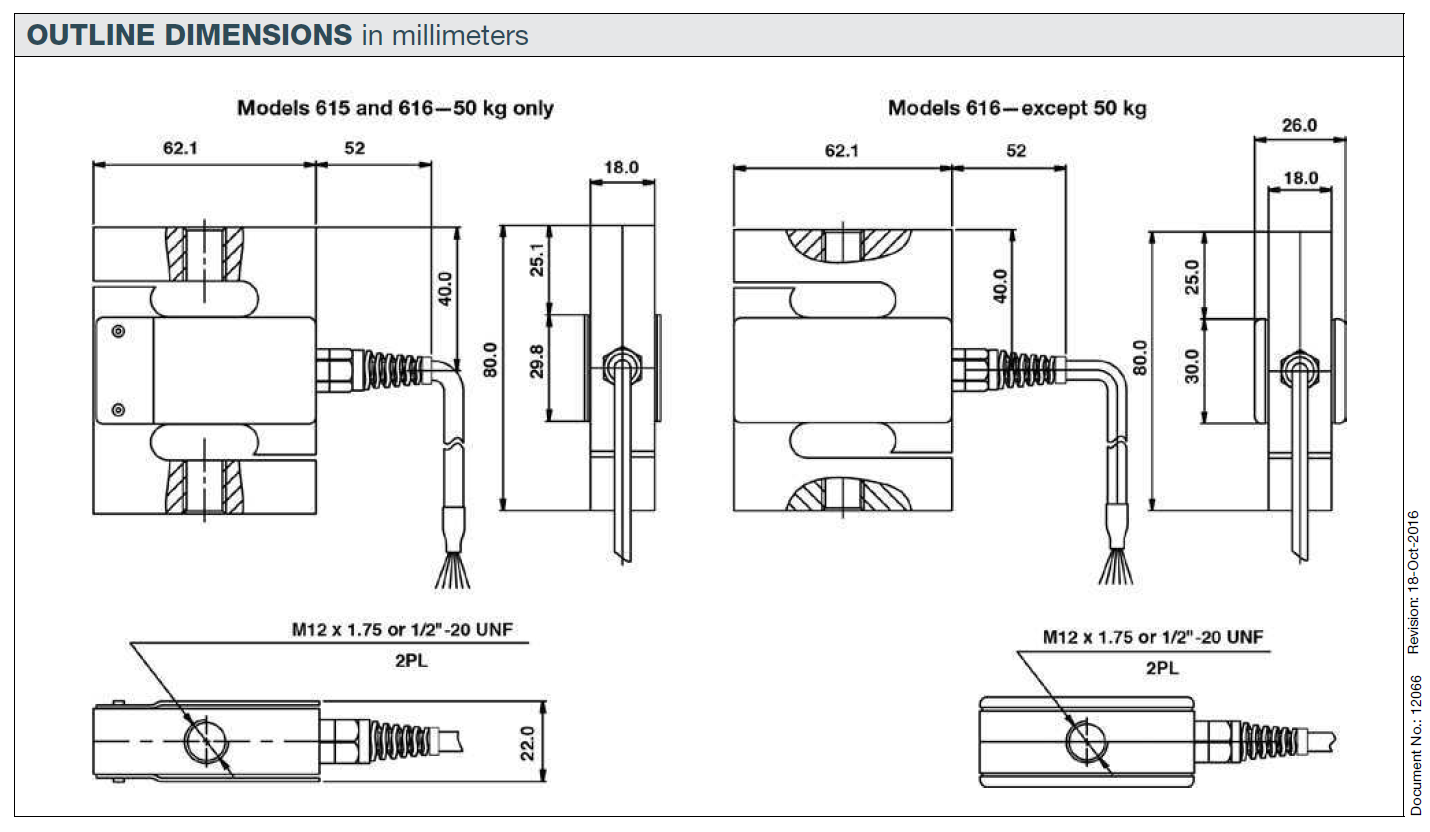 • Protection: Model 616—IP66; Model 615—IP67