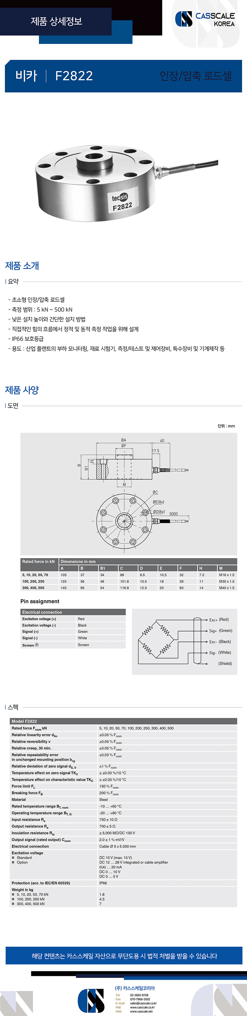 Pancake 타입 인장/압축 로드셀 F2822 용량 : 5, 10, 20, 50, 70, 100, 200, 250, 300, 400, 500 kN