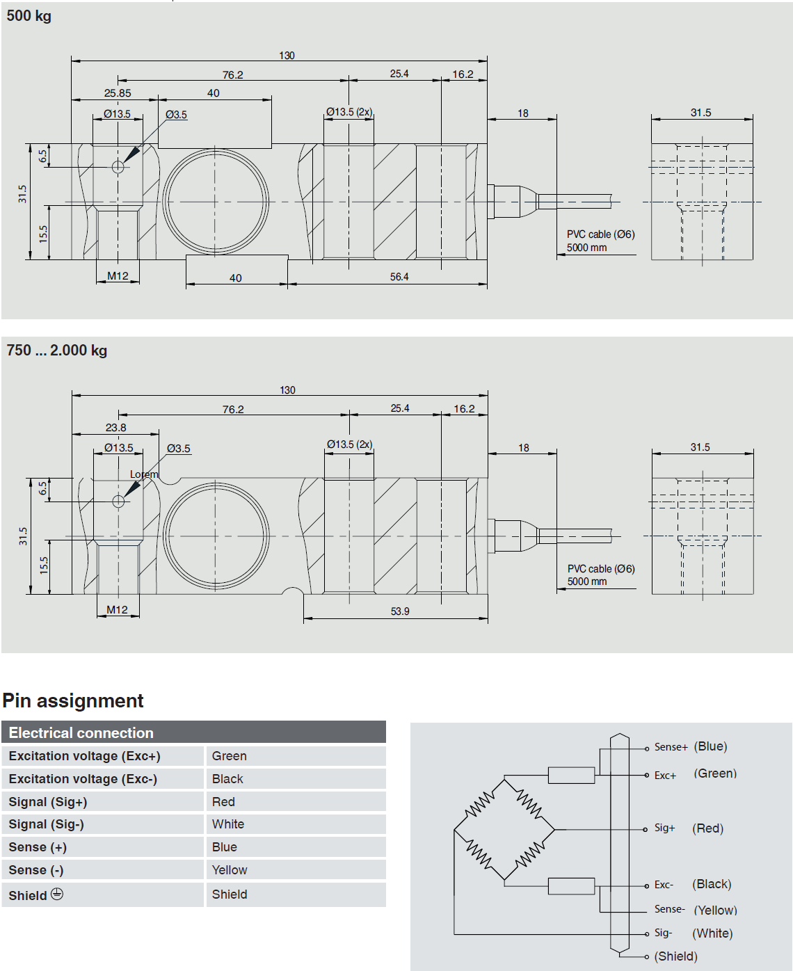 | Rated Load (Fnom) | 500 / 750 / 1,000 / 2,000 kg |