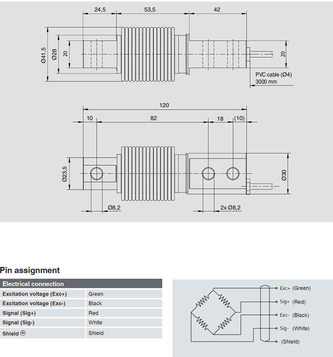 To avoid overloading, the bending beam should be electrically connected and the measured value monitored during assembly.The measuring force must be introduced through the centre and free of transverse force.