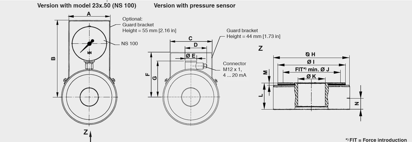 | Version | Pressure gauge Model 23x.50 (NS 100) | |