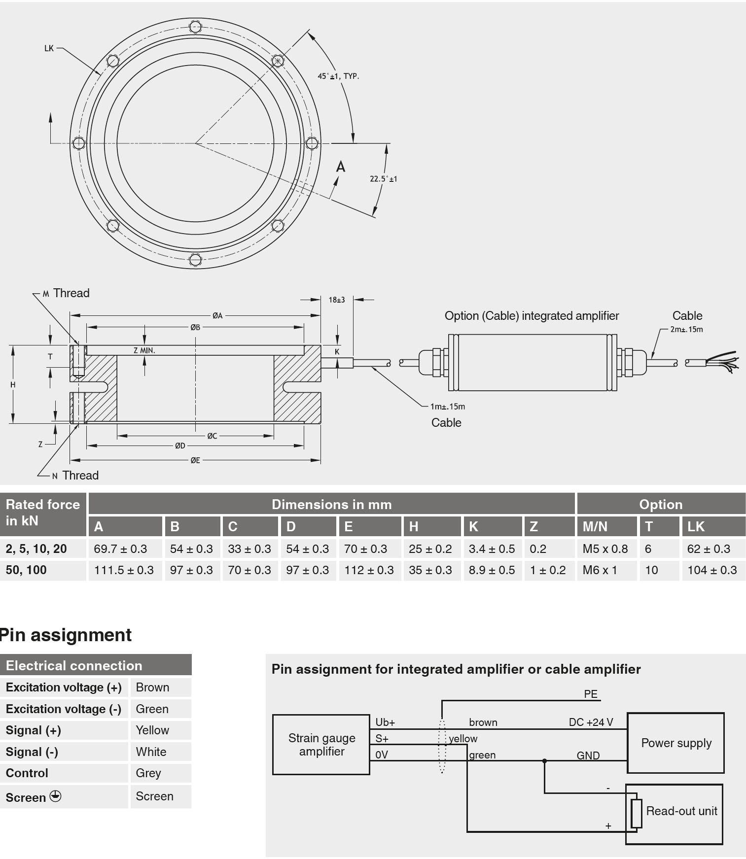| Rated force Fnom kN | 2, 5, 10, 20, 50, 100 |